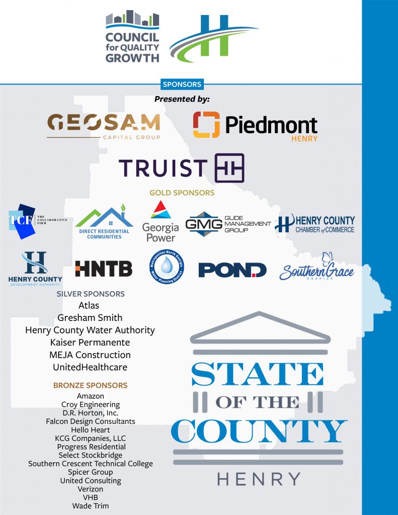 HENRY COUNTY, GA – On Thursday morning, April 2, 2026, the Council for Quality Growth, in partnership with Henry County, hosted a record-breaking crowd for the 2026 State of Henry County Address at Stockbridge Community Church. Presented by Geosam Capital Group, Piedmont Henry Hospital, and Truist, the breakfast and program featured the annual address from the Chairwoman of Henry County’s Board of Commissioners, Carlotta Harrell. More than 400 Council and Chamber members, elected officials, businesses, residents, county staff, and partners of Henry County attended.