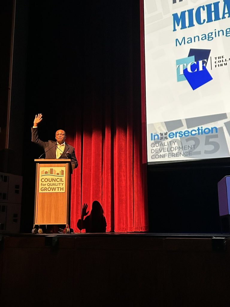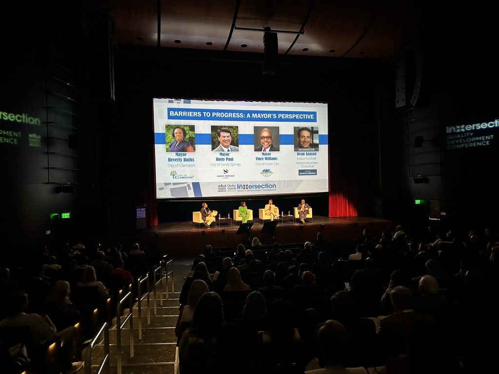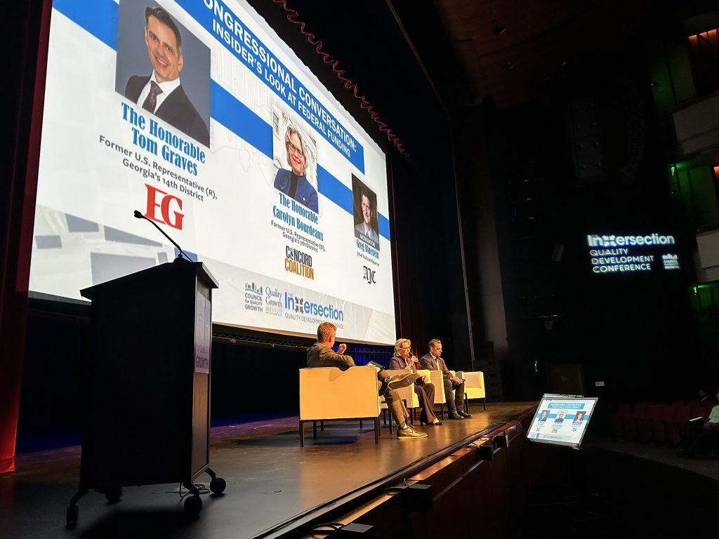 ATLANTA, GA – On August 15, 2025, the Council for Quality Growth hosted more than 500 attendees at the Sandy Springs Performing Arts Theater in City Springs for its 5th annual The INTERSECTION Quality Development Conference. This event is product of the Quality Growth Institute, the education arm of the Council. The INTERSECTION convened public policy and private business leaders from across the region to discuss critical issues facing metro Atlanta. The 2025 theme was “Infrastructure and Investment,” which continued conversations around infrastructure presented last year, but with a new focus on the challenging landscape for funding it at the local, state, and national levels. Doug Hooker, former Executive Director of the Atlanta Regional Commission, served master of ceremonies.